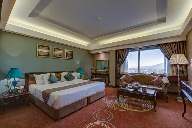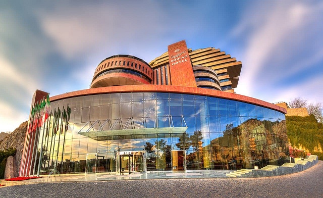 يقع فندق شيراز الخمس نجوم (الفندق الكبير) على قمة مدينة شيراز بجوار بوابة القرآن. افتتح في عام 2013 ميلادي، ويتكون من 13 طابقًا ومجهز بمعايير فنادق خمس نجوم عالمية. يضم 158 غرفة بسعة 350 شخصًا. يتميز بقربه من المعالم التاريخية والدينية والترفيهية، ويحتوي على أكبر مطعم دوار في إيران. يتميز الفندق بمظهره الشبيه بالسفينة ويعتبر أول مبنى يراه الزوار عند دخولهم شيراز. يقدم الفندق خدمات ممتازة بفضل فريق عمل مدرب وجاهز لاستقبال الضيوف.