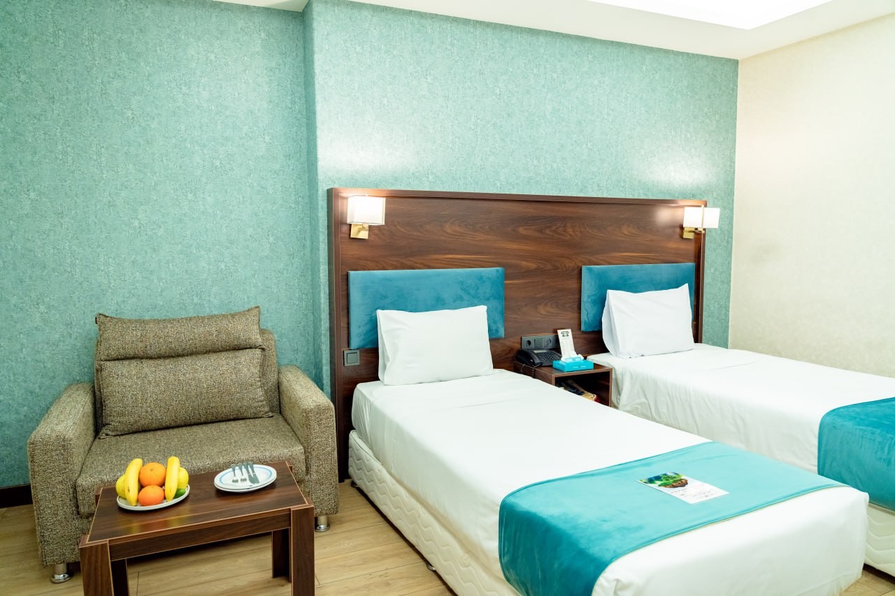 اقامت کودک زیر 2 سال (درصورت عدم استفاده از سرویس) رایگان می‌باشد و بازه سنی برای اقامت کودک بین 2 الی 7 سال (درصورت عدم استفاده از سرویس) نیم بها محاسبه می‌گردد. لازم به ذکر است : اقامت رایگان و نیم بها تنها برای یک کودک محاسبه می‌گردد.