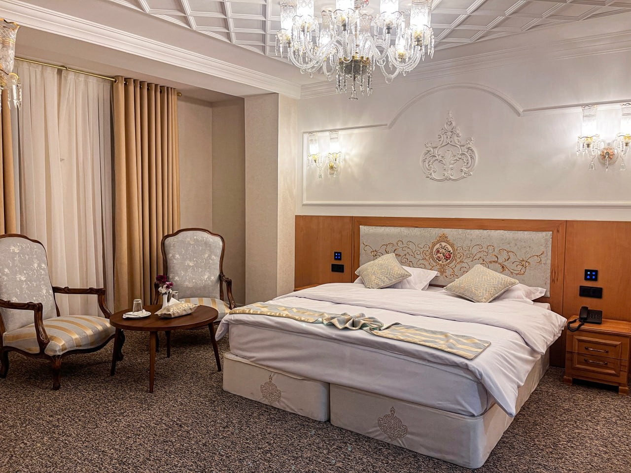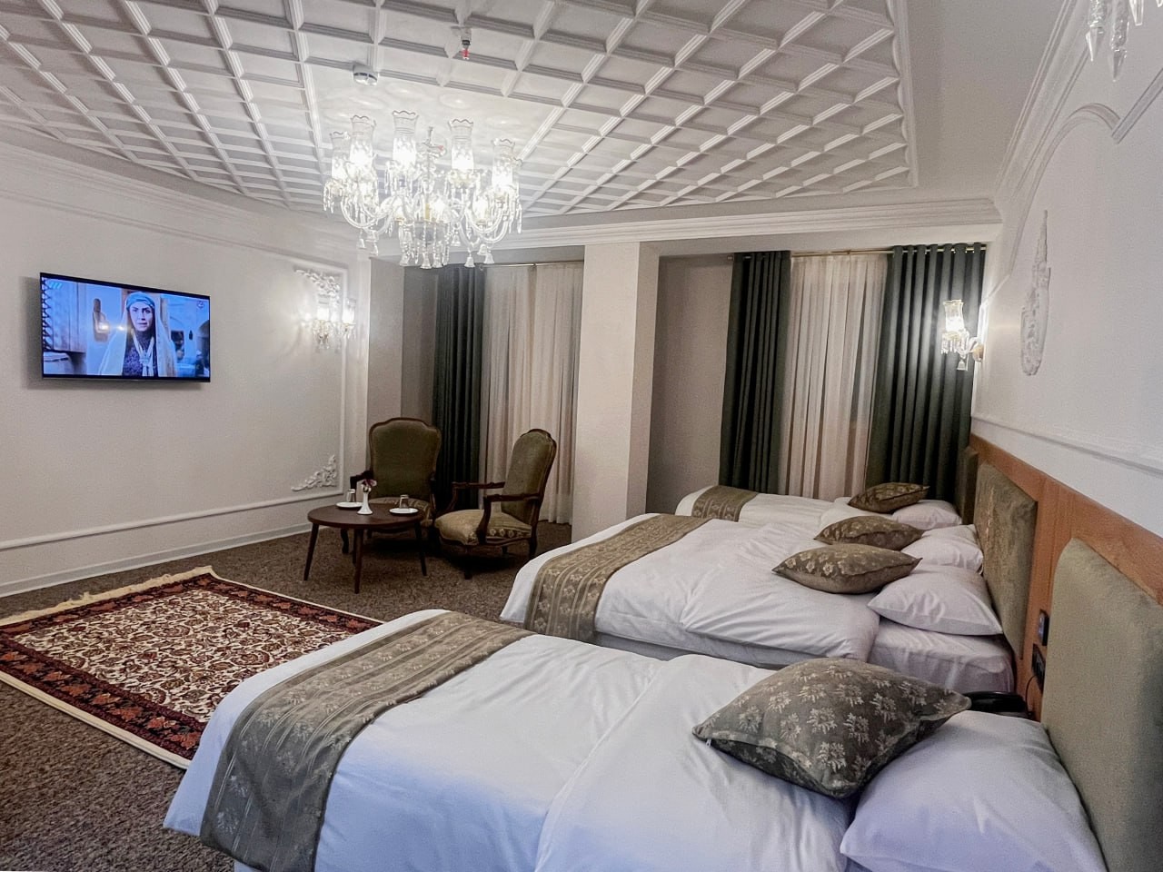 اقامت کودک زیر 2 سال (درصورت عدم استفاده از سرویس) رایگان میباشد و بازه سنی برای اقامت کودک بین 2 الی 6 سال (درصورت عدم استفاده از سرویس) نیم بها محاسبه میگردد. لازم به ذکر است : اقامت رایگان و نیم بها تنها برای یک کودک محاسبه میگردد.