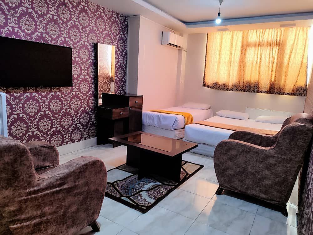 سن اقامت کودک زیر 4 سال (درصورت عدم استفاده از سرویس) رایگان می باشد و هزینه ی اقامت کودک بالای 4 سال به طور کامل محاسبه می گردد. لازم به ذکر است : اقامت رایگان و نیم بها تنها برای یک کودک محاسبه میگردد.