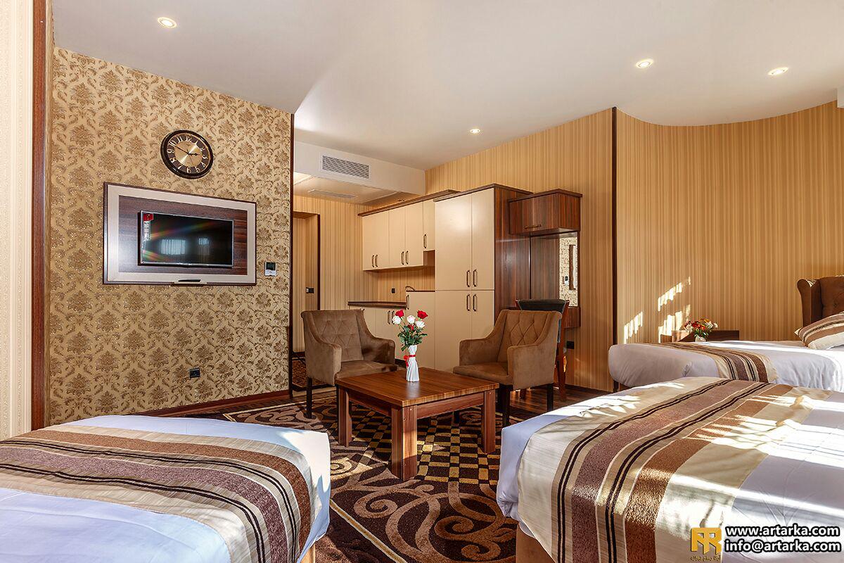 اقامت کودک زیر 3 سال (درصورت عدم استفاده از سرویس) رایگان میباشد و بازه سنی برای اقامت کودک بین 3 الی 5 سال (درصورت عدم استفاده از سرویس) نیم بها محاسبه میگردد. لازم به ذکر است : اقامت رایگان و نیم بها تنها برای یک کودک محاسبه میگردد.